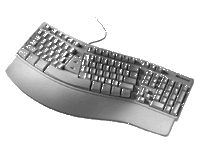 | Certains claviers sont dit ergonomiques comme le Microsoft Natural Keyboard Elite. Ces claviers sont assez particuliers mais peuvent s'avérer très confortables. | ![]() |