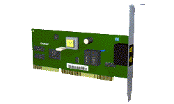 | C'est une carte de type ISA ou PCI à insérer sur un slot libre de votre ordinateur. Seul la liaison à une prise RTC est nécessaire, car c'est l'ordinateur qui prends en charge l'alimentation de la carte. De plus, le modem est mieux protégé contre les vols et contre les chocs. Mais vous aurez à configurer souvent les cavaliers (switches) situés sur votre modem pour choisir un numéro de port série disponible. | ![]() |